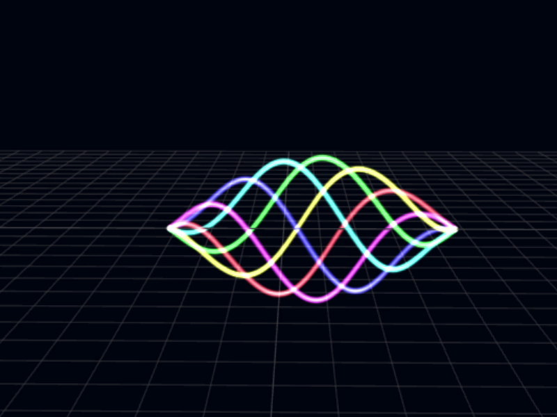 [A sequence of images showing an object consisting of helical strands going around a central axis. Each strand performs a single 360° rotation, starting at the central axis, going outward and coming back to the center. Several strands together form a spindle-like shape. While the object propagates to the right like a spinning bullet, each strand looks like a standing wave with only the amplitude coming and going.]
